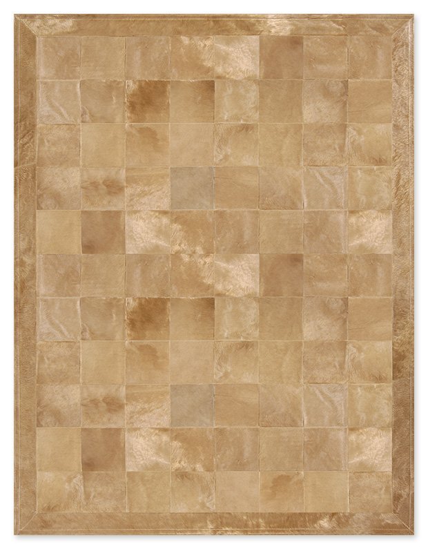 Hand made skin rug in Beige color, custom made at any size, from high quality cow leather panels of 20×20 cm, with special treatment for use on the floor.