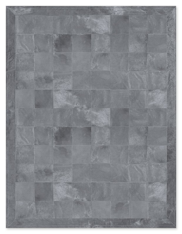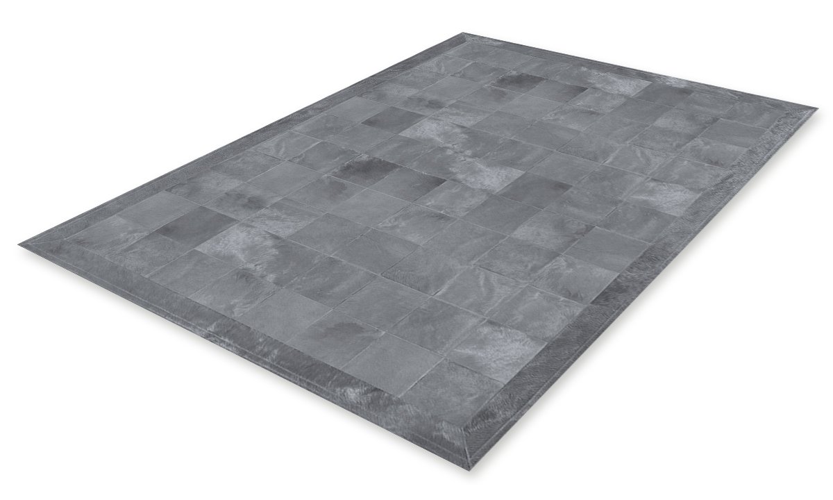 Hand made skin rug in Light Grey color, custom made at any size, from high quality cow leather panels of 20×20 cm, with special treatment for use on the floor.