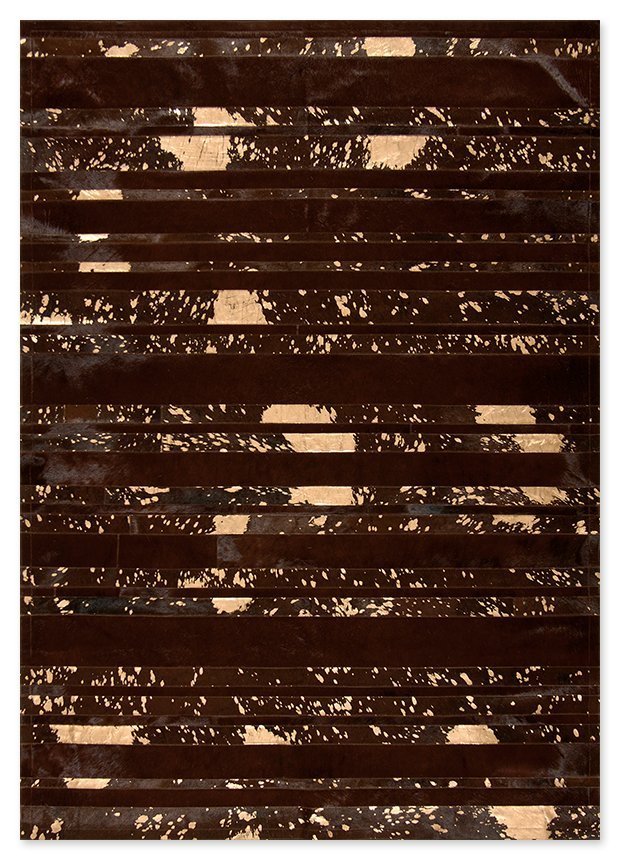 Cow skin rug, stripes design in Brown-Bronze color. Custom made at any size, from high quality cow leather with special processing of metallic color.